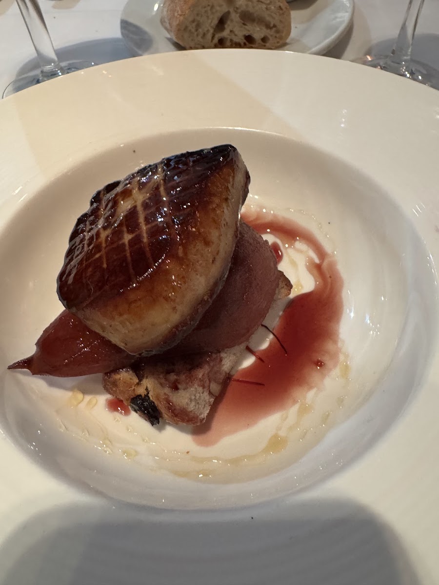 My husband and I had an amazing dinner at La Coquille. Escargots Bourguignonne was so good that we felt like we were dining in France. Baguette was so tasty when you dip in the sauce. I enjoyed warm octopus salad. Packed with flavor and good portion of octopus. Filet of sole en Croute is such a classic dish with touch of beurre blanc. Veal Escalopes was so well cooked and loved pomme purée and chestnut. Loved everything at dessert cart but end up having Napoleon. Service was top notch! We owned restaurants in NYC for over 30 years and my husband is a culinary trained chef, so he doesn’t get impressed easily. He throughly enjoyed the food! When we left, we forgot our bag and the bus person ran out to look for us in parking lot. It shows that staff care about the customers. Had an amazing experience and can’t wait to go back to try other dishes.